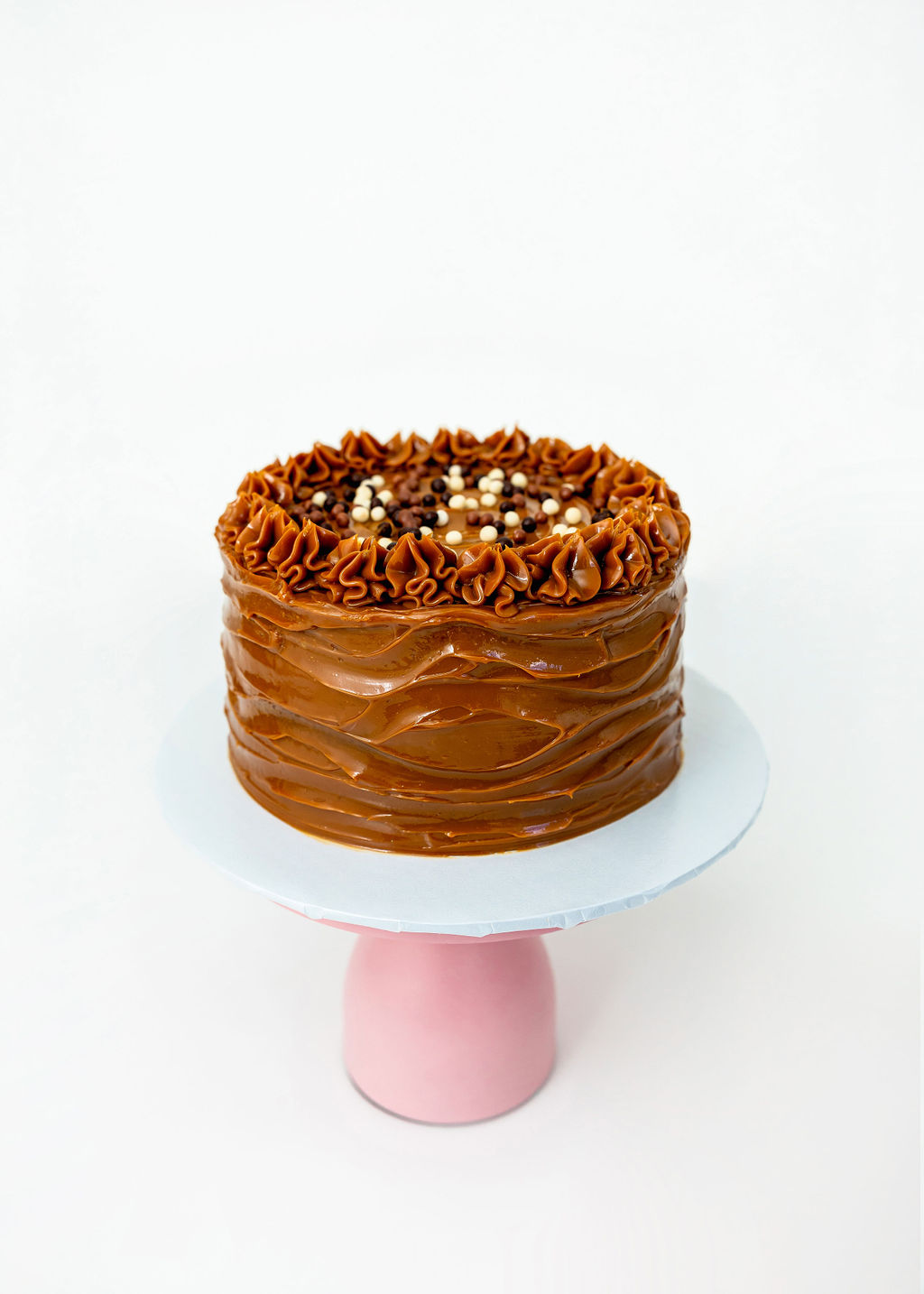 Enjoy our delicious vanilla layer cake filled with creamy dulce de leche and rich nutella. This cake is covered in a thin layer of dulce de leche creating a treat you won’t forget.